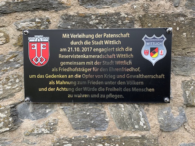Mit Verleihung der Patenschaft in 2017 durch die Stadt Wittlich über den Ehrenfriedhof ist die 2malige Reinigung im Jahr zu einer Verpflichtung auf die RK Wittlich übergegangen der die Kameraden immer wieder gerne nachkommen.