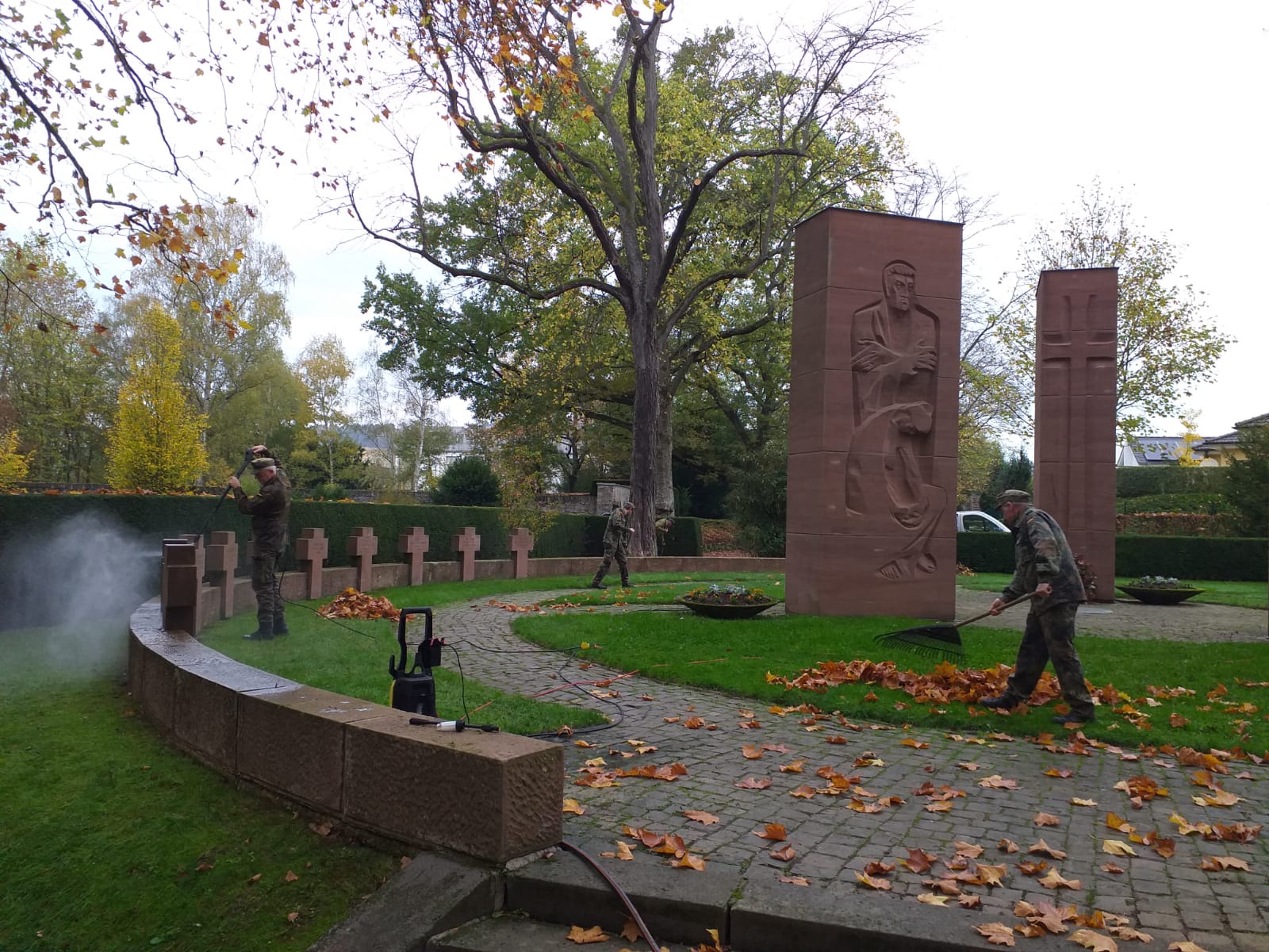 Bei herbstlichen Wetter hat die Reservistenkameradschaft mit 14 tüchtigen Reservisten und einer Schülerin ihre diesejährige Herbstreinigung auf dem Ehrenfriedhof der Stadt Wittlich durchgeführt und sind dem Schmutz und Unrat aber auch dem Laub und dem Wildwuchs zu Leibe gerückt.