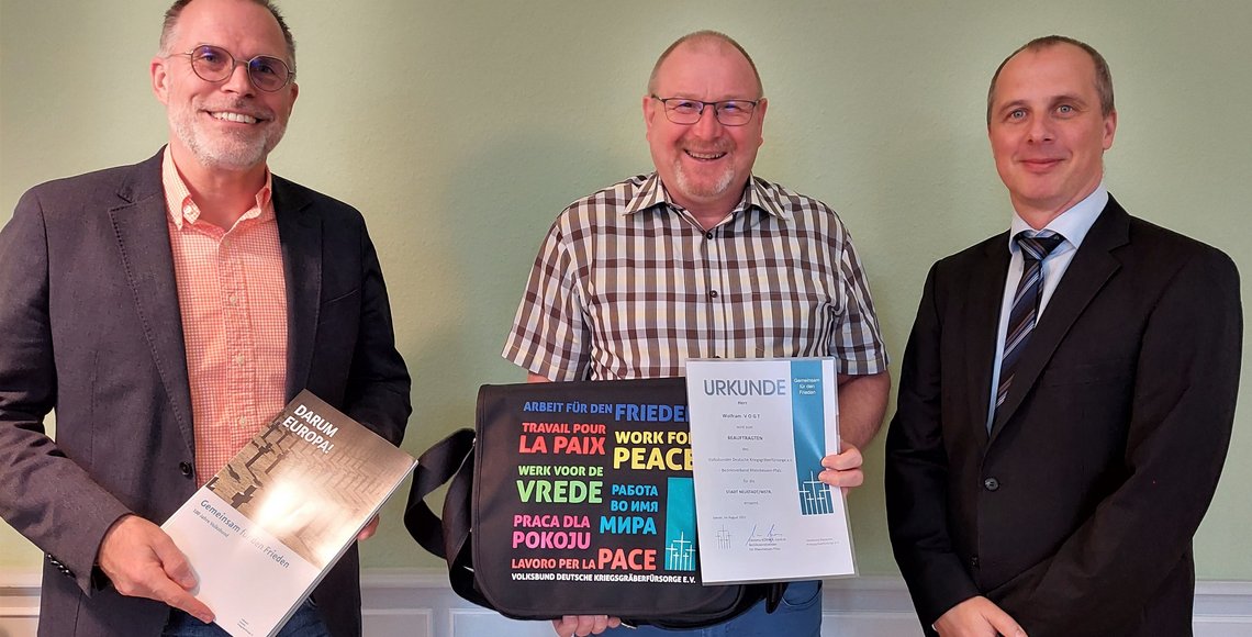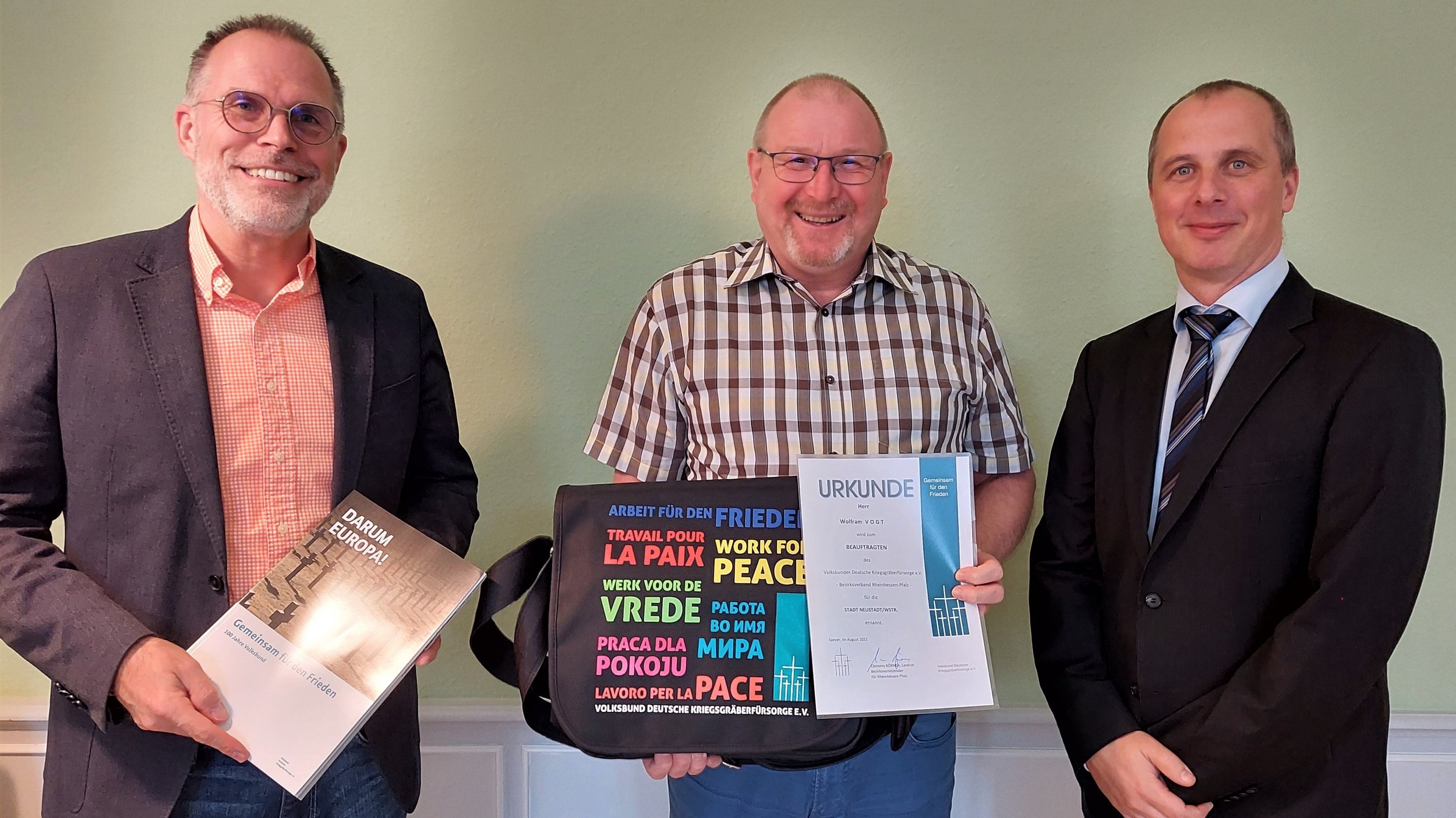 Die Ernennung fand im Rathaus der Stadt im Beisein von Verwaltungsleiter Christian Littek statt. Der Volksbund bedankt sich bei Herrn Vogt, dass er diese wichtige Aufgabe übernimmt und bedankt sich gleichzeitig bei seinem Vorgänger Herr Reinhard Weber.
