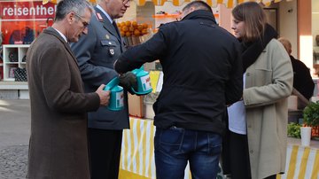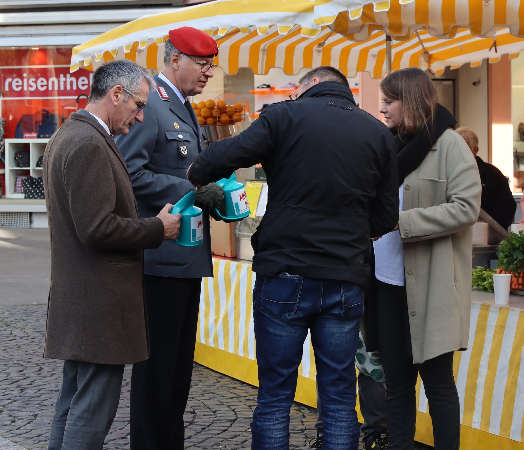 Am Dienstag, den 11. Oktober wurde mit der Sammeldose in der Hand zu Spenden und zum Sammeln für die Arbeit des Volksbundes Deutsche Kriegsgräberfürsorge e.V. ermuntert.